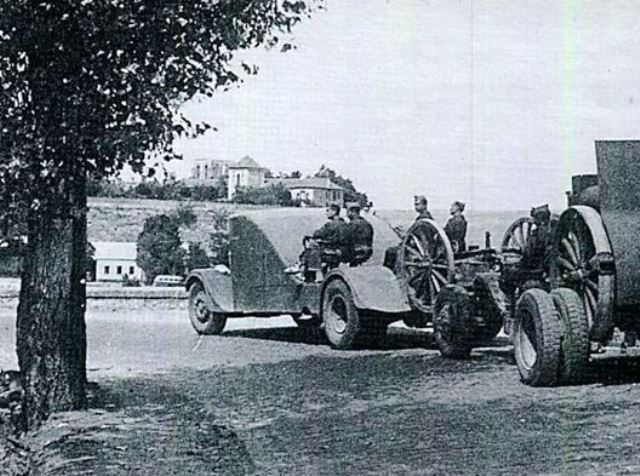 foto: 29 de enero de 1937. Tractor blindado diseñado por el comandante de Artillería, Joaquín Carvallo. Remolca una pieza Schneider- Trubia de 155 mm.