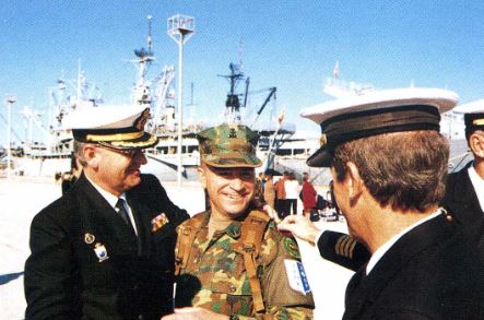 Foto: El general Xavier de Lambert felicita personalmente al sargento de la Infantería de Marina española, Juan Luna Álvarez.