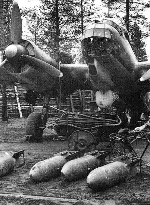 foto: Junkers Ju 88A disponiéndose a embarcar su carga de bombas (Foto: Ministerio de Defensa de Finlandia).