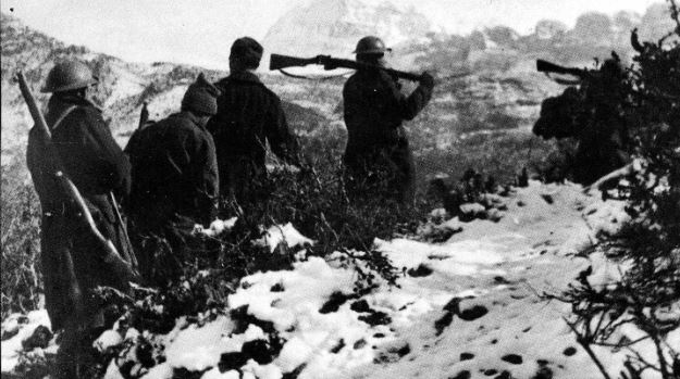 foto: Una columna del Ejército helénico progresa en el rudo paisaje invernal de Kónitsa.
