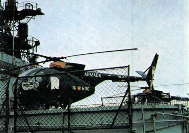 Dos helicópteros “Hughes-500” antisubmarinos a bordo de sendos destructores clase “Churruca”.