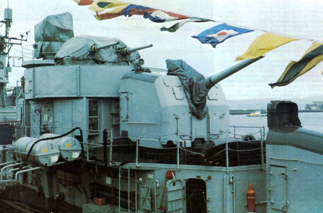 Una de Ias torres de popa de 127/38 mm. y el montaje doble de 40/60 mm. “Mk.1”del D-21 “Lepanto “.