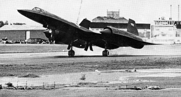 foto: El SR-71A 61-7972 llegando a Farnborough el 1 de septiembre de 1974, después de haber batido el récord de velocidad en vuelo trasatlántico, al cubrirla distancia entre New York y Londres en 1 hora, 55 minutos y 42 segundos, a una velocidad media de 2.924 km/h.