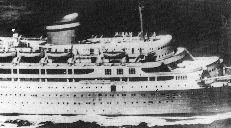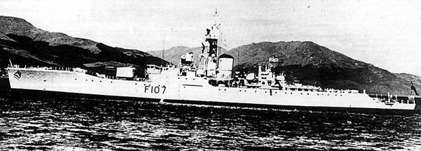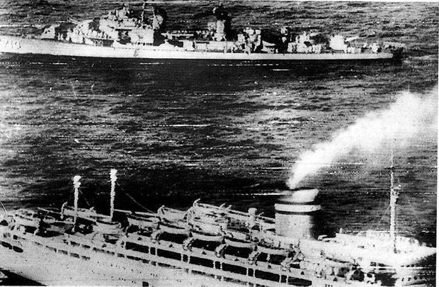Foto: El destructor “USS Gearing” con, en primer plano, el transatlántico portugués.