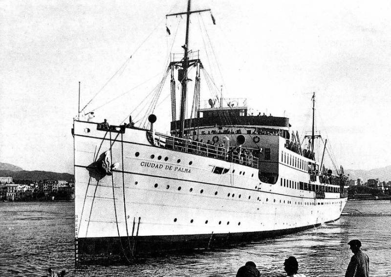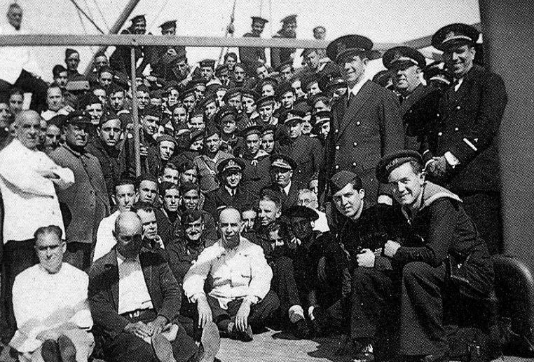 Foto: El “Ciudad de Palma”, en Bilbao. En la foto figuran varios médicos ya que el barco, tras sus correrías, se convirtió en hospital flotante.