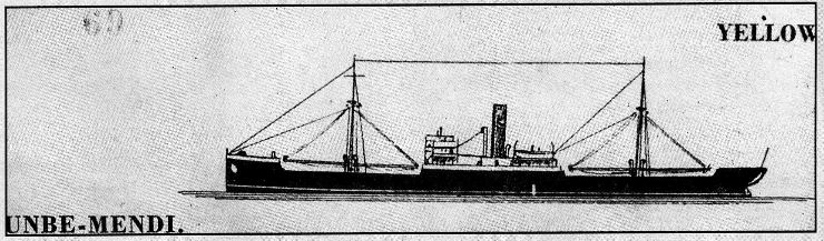 «El “Unbe-Mendi” fue capturado, al igual que el “Agire-Mendi”, el 12.04.37 en el Cantábrico, cuando navegaban ambos despachados con azúcar de Cuba a Rotterdam, por el también crucero auxiliar nacional “Ciudad de Palma”, en operación preparada por los servicios de inteligencia nacionales con la colaboración de la oficialidad de los propios buques. El “Unbe” tomó parte en la famosa acción de Cabo de Palos el 05.03.38, cuando navegaba procedente de Italia, con importante cargamento de material de guerra (pérdida del “Baleares”)».