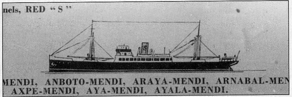 *Debe leerse “Aguirre-Mendi”. Los barcos de Sote y Aznar, por determinación del primero que era quien llevaba la voz cantante en la naviera, utilizaban la ortografía inventada para el vascuence por el fundador del nacionalismo vasco, Sabino Arana. De acuerdo con la misma Aguin-e se convierte en Agire, con tilde sobre la r, para indicar el sonido erre.