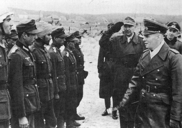 foto: Derrotado en África, aunque tan sólo debido a su carencia de medios, Rommel reapareció en el sector de operaciones del Oeste donde le vemos revistando a voluntarios de la India.