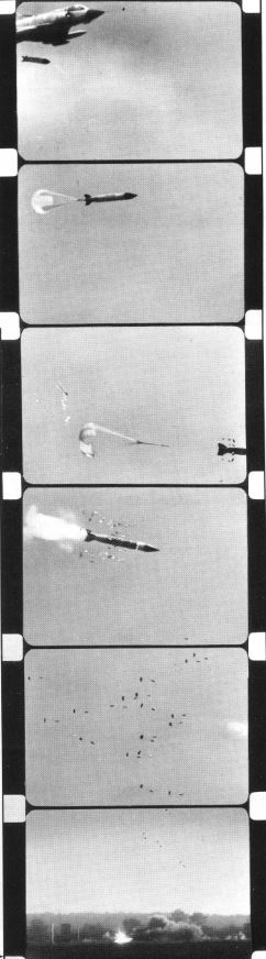 El petardo esférico que hemos hecho detonar, provoca una onda de choque acompañada inmediatamente del golpe de aire o soplo. La onda de choque avanza de forma esférica, las sobrepresiones se van amortiguando rápidamente produciéndose las siguientes zonas de daños: zona de expansión, los 100 kg/cm2 limitan la zona de expansión, la sobrepresión es brutal, de 100 toneladas métricas por metro cuadrado; zona de daños máximos, en su límite tenemos una sobrepresión de 0,7 kg/cm2., con una presión de 7 toneladas por metro cuadrado, de forma violenta, no hay muro que se resista; zona de daños medios, aquí la presión está comprendida entre 0,7 kg/cm2 y 0,07 kg/cm2., es decir, 7 toneladas por metro cuadrado y 700 kilogramos por metro cuadrado, se derrumban los tabiques, se arrancan puertas y ventanas, etc.; zona de daños mínimos, la presión oscila entre los 0,07 kg/cm2. y los 0,001kg/cm2., se rompen los cristales y se arrancan las tejas.
