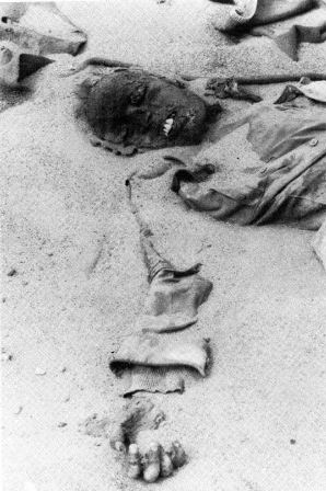 Foto: El fin de un soldado marroquí medio momificado ya entre la arena del desierto.