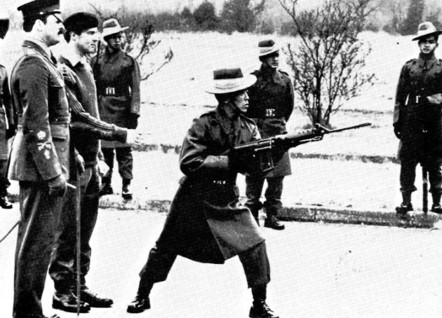 El Centro de lnstrucción se encuentra aquí desde que hubo de abandonar Malasia, al acceder este país, en 1970, a la independencia. Las unidades de Infantería y de Apoyo gurjas, con las mixtas, más dos batallones británicos, constituyen la guarnición de la importante colonia de Hong Kong. Cuidan de la seguridad interna y del control de la frontera con China Popular pero, excepto un batallón ligero, los demás, como son batallones de Infantería normales, están equipados e instruidos para llevar a cabo operaciones en todo el mundo. Señalará que los batallones de gurjas normales rotan por turnos en el Reino