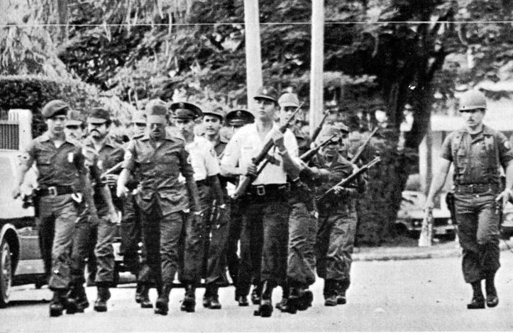 foto: Soldados hondureños en Ias calles de San Pedro Sida, donde intervinieron contra la guerrilla.