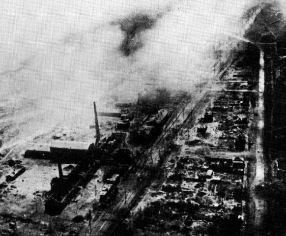 foto: Fotografía aérea de Stalingrado en llamas tomada por los aviones de reconocimiento alemanes a (17-IX-1 942).