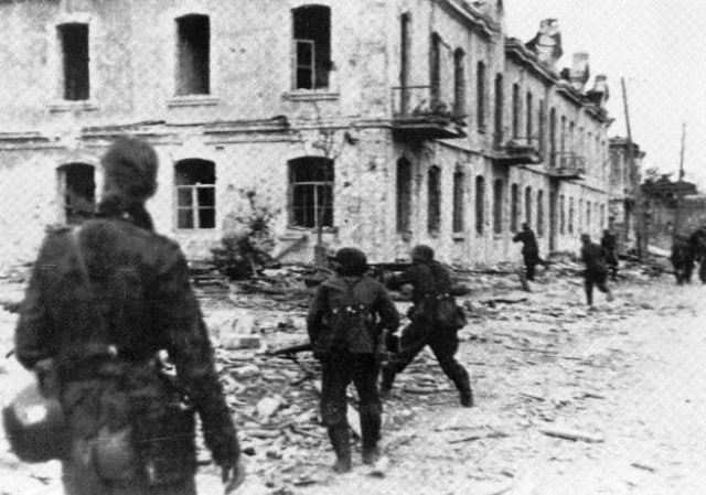 foto: “Infantes alemanes en tarea de limpieza de calles contra francotiradores soviéticos”. (25-IX-1942).