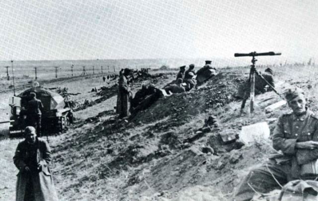 foto: “Puesto de mando avanzado. Al fondo secciones de Infantería alemana esperan la orden de comenzar un ataque contra posiciones soviéticas en Stalingrado” (sin fecha).