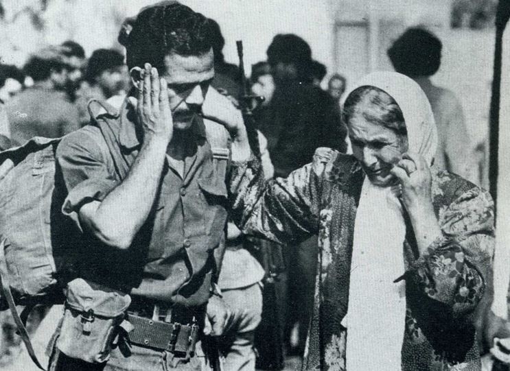 foto: El dolor de una madre palestina que despide a su hijo, combatiente de la OLP. Pagan por ser palestinos, por haber nacido en Palestina.