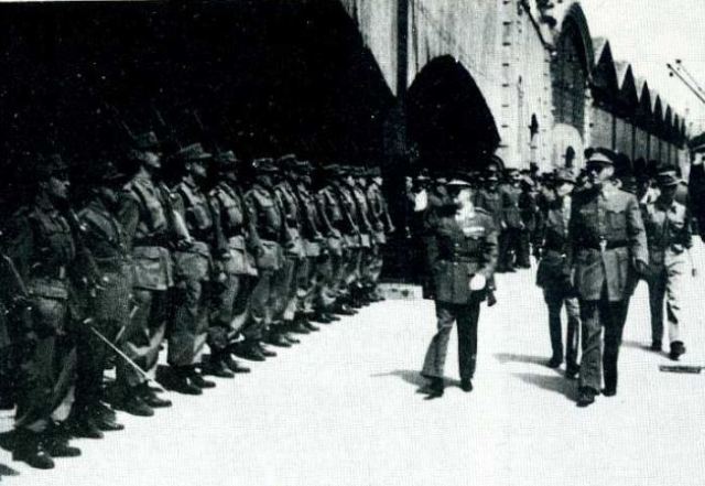 Foto: Fuerzas del Regimiento de Infantería “Guadalajara “nº 20 son revistadas, en el puerto de Valencia, a su regreso del Sáhara.