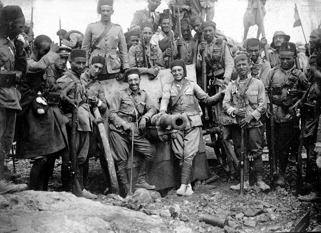 foto: 1921: Soldados Regulares posan junto a un cañón capturado al enemigo en la Guerra de Marruecos.
