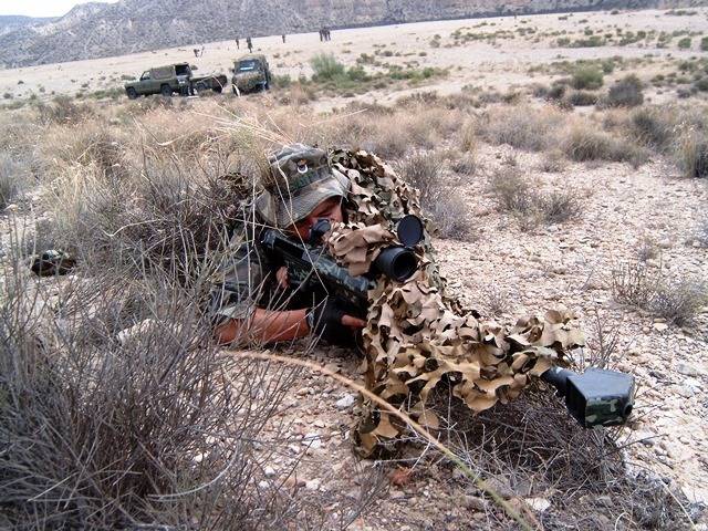 Foto de portada: 2007: Componente del equipo de tiradores de precisión del Grupo de Regulares de Ceuta nº 54 preparado para hacer fuego con el fusil Barret M-95.
