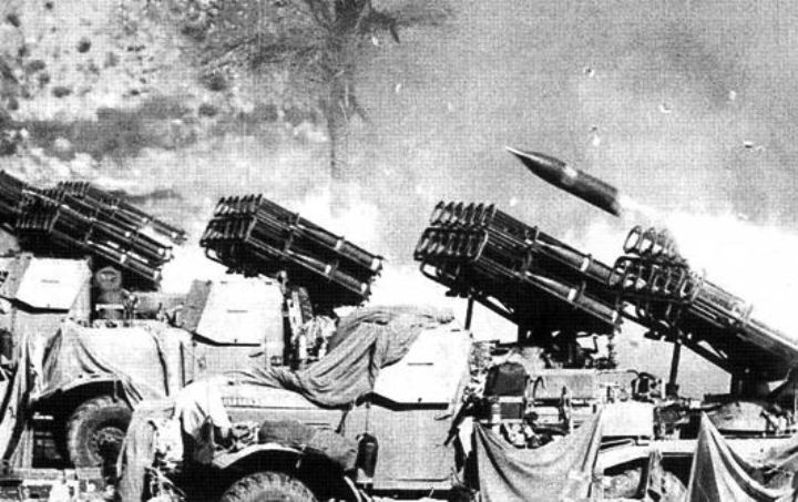 foto: Lanzadores de origen soviético haciendo fuego en Líbano, en agosto de 1982.