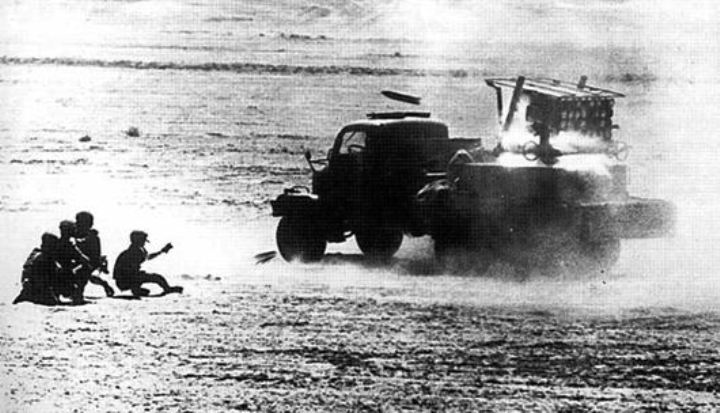 foto: “Órgano Stalin”, de la SGM, modernizado por Checoesiovaquia en los años 60. Consta de 32 tubos de lanzacohetes de 130 mm.