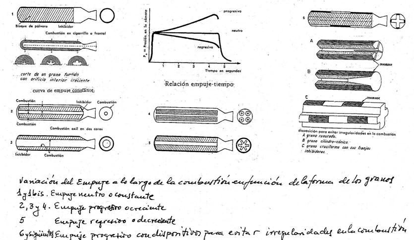 Pero además de la composición del grano, resulta fundamental su forma. Con pólvoras idénticas pueden obtenerse unas producciones de gases (gasto) muy diferentes, con las consiguientes variaciones del rendimiento del motor, según sea la superficie de combustión.