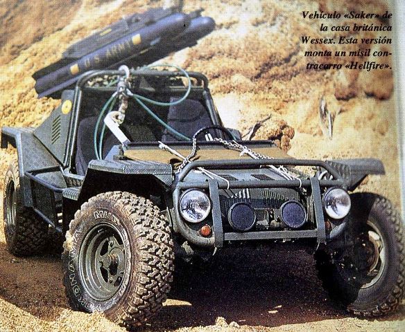 Cabe añadir que otra casa británica, Wessex Plc., fabricó en 1990 dos prototipos de un LSV bautizado Saker. Este ha sido mostrado a los Royal Marines, al Ejército francés e incluso al norteamericano, tratándose de un vehículo biplaza propulsado por un motor Volkswagen de 1.950 cc. que le proporciona velocidades de 135 km/h., con una capacidad de carga de 400 kg. y un radio de acción de 960 km.