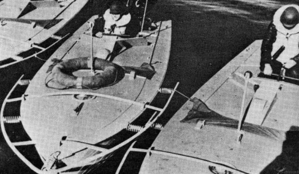 Estas lanchas eran de madera y muy veloces, teniendo en la proa un saliente dotado de unos muelles, que al chocar contra el objetivo se comprimían y accionaban un mecanismo de relojería, mediante el cual la embarcación se partía en dos y la carga explosiva (300 kg.) se hundía a pocos metros del casco o la quilla del barco, haciendo explosión en un determinado instante programado de antemano.