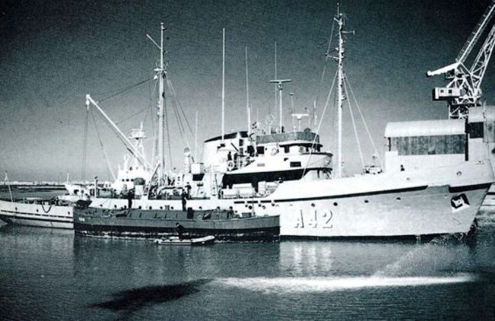 foto: Aljibe «Torpedista Hernández» A-63. Aquí le vemos en el carenero de la Bazán cartagenera.