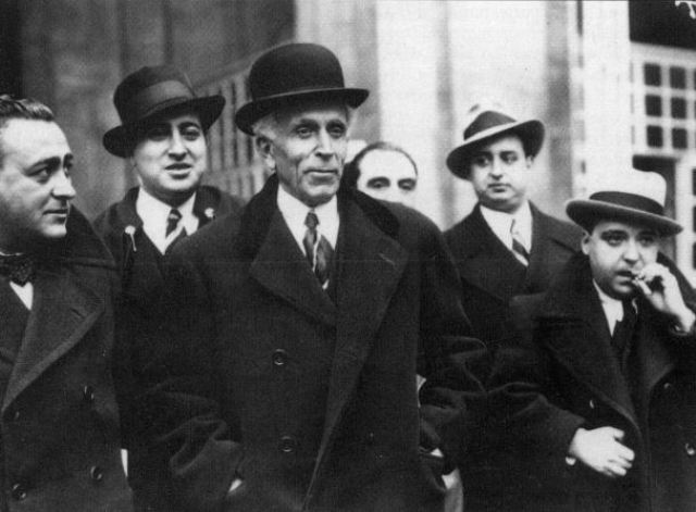 foto: Portela Valladares, con bombín, en una foto que parece tomada en el Chicago de los años 30. Fue uno de los tantos masones que controlaron el poder en el periodo republicano.
