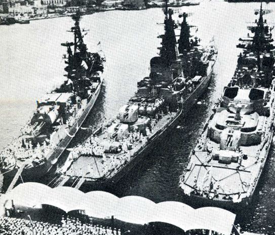 foto: Destructores clase “Kildin” y “Kashin” y crucero clase “Kynda”, en el puerto de La Habana en una de las frecuentes visitas de la escuadra de la URSS.