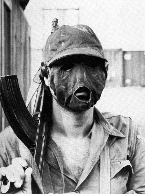 foto: Este mercenario francés, combatiente en las Falanges cristianas libanesas, oculta su rostro tras una máscara, en evitación de posibles represalias.