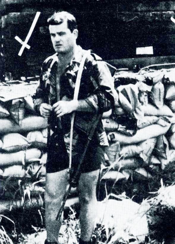 foto: El autor de este informe, Arturo Pérez-Reverte, en algún lugar de África, a mediados de los 70 en el curso de una operación con mercenarios blancos y de color. Si bien no es habitual que los periodistas utilicen armas, en determinadas situaciones es imposible confiar a otros la propia supervivencia.
