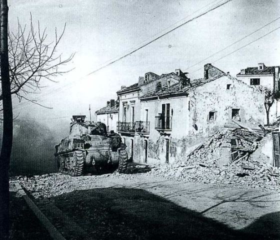 Foto: Un “Sherman” neozelandés avanza a través de Castel Frentano, en Italia. Los desembarcos en Sicilia y en la Península apenina se vieron favorecidos al conocer los aliados, a través de “Engima”, los planes de los alemanes (Foto: Colección Alberto Carbone)