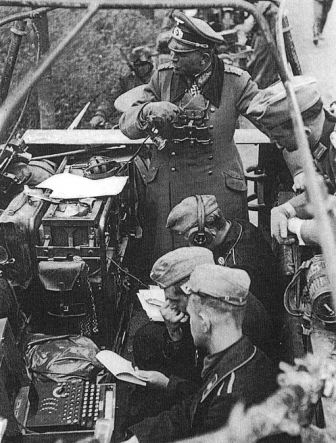 Foto: El general Guderian en su puesto de mando móvil con, en primer plano, una máquina “Enigma”.
