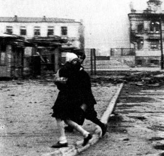 Foto: La población moscovita corre en busca de refugio mientras arden las casas.