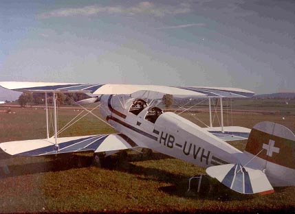 El tren de aterrizaje era el clásico, con eje partido y patas elásticas provistas de resortes en espiral y amortiguadores de aceite, revestidas de un carenado en trapecio con ruedas al descubierto, aunque las versiones suizas montaban un guardabarros al estilo de las motos. En la cola llevaban una ruedecilla en vez del típico patín. Todo ello daba como un resultado un avión ligero, fácil de construir, pero muy sólido. El motor se instalaba sobre una bancada de tubos de acero al cromo-molibdeno soldados, alimentado por gravedad desde un depósito de 90 l. situado delante del pasajero. Muchos llevaban carburador que permitía el funcionamiento en invertido. La hélice en todas las versiones fue de madera, de paso fijo y 2 m. de diámetro.