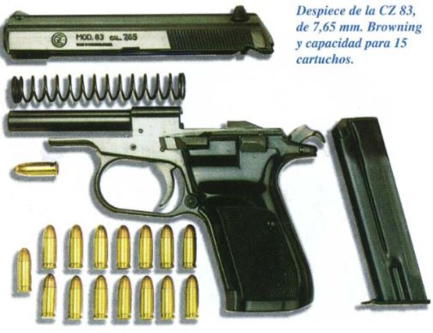 La pistola CZ 82, antes mencionada, es un arma semiautomática muy compacta del calibre 9 mm. Makarov, continuadora de sus antecesoras las CZ 50/52, pero con una alta capacidad de cargador (12 cartuchos). Su diseño, similar a la Walther PPK, le confiere una fiabilidad que como arma de defensa personal pocas pistolas tienen.