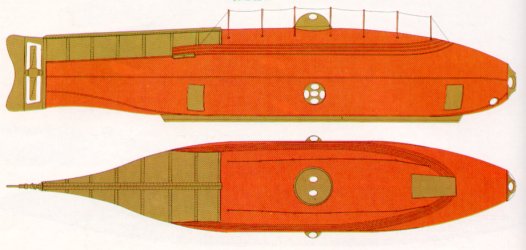 Foto: Perfil del ICTÍNEO II. Observa su perfil fusiforme más cercano a los actuales de casco de gota. Todo un logro de la hidrodinámica.