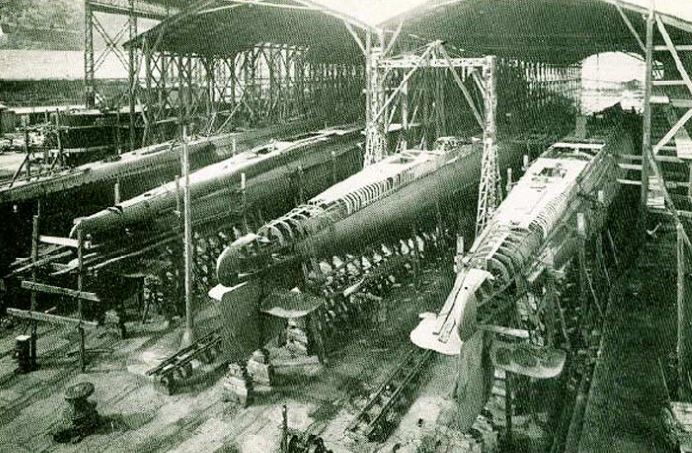 Foto: Submarinos Tipo C en construcción en la factoría Bazán.
