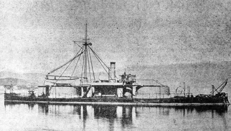 El barco fue botado en octubre de 1874, dando un desplazamiento de 553 ton., una eslora de 39,5 m., 9 de manga, 2,6 de puntal y un calado de 2. El blindaje de su casco, según el “Brassey Naval Anual”, era de 4 pulgadas, al igual que el de sus torres, que tenían un diámetro de 6 m., y una altura de 1,85. Era horrendo —escribe el historiador naval González Echegaray—, apenas sobresalía del agua y llevaba dos enormes torres acorazadas y una chimenea ridícula. Dos máquinas gemelas, horizontales, sistema Wolf de 318 HP, le proporcionaban una velocidad de 7 nudos, impulsando dos hélices. Ya desde el primer momento su comandante informó de lo difícil que resultaba hacerlo navegar, aunque el mayor defecto era su poca habitabilidad, tanto por falta de espacio—la mayor parte del casco Ia ocupaban Ias máquinas, pertrechos y Ias 25 toneladas de carbón que embarcaba— como por Ia obligación de mantener cerradas Ias escotillas durante Ia navegación, produciéndose gran humedad, diferencias de temperatura y enrarecimiento del aire, lo que se traducía en constantes afecciones respiratorias por parte de sus tripulantes.