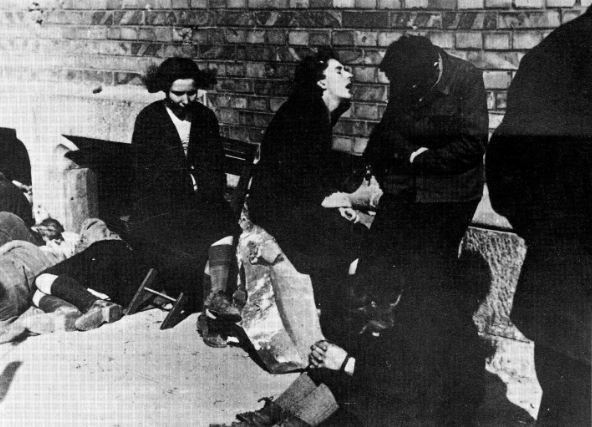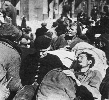foto: Aplastado el levantamiento, los supervivientes civiles son agrupados.
