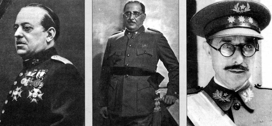 foto: De izquierda a derecha: generales Sanjurjo, Aranda y Beigbeder. Todos ellos fueron maldiestros complotadores monárquicos, el primero contra la República y los dos últimos contra Franco. De Aranda se dijo que era “el hombre más odiado por Franco y el hombre que más odió a Franco”