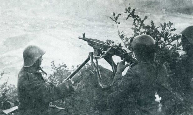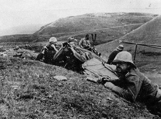 foto: Oficiales rumanos y alemanes en una posición del frente del Cáucaso.