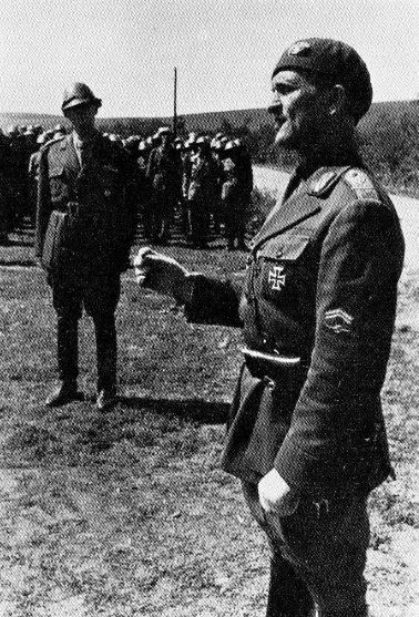 foto: Un oficial rumano, condecorado con la Cruz de Hierro de primera clase, arenga a sus hombres.