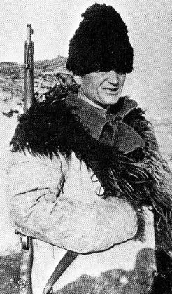 foto: Con gorro y abrigo de campesino, este soldado rumano presta servicio de vigilancia en la cabeza de puente del Don.