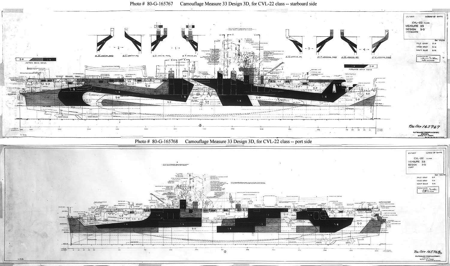 Foto: Esquema oficial de camuflaje para portaaviones ligeros de la serie “Independence”.