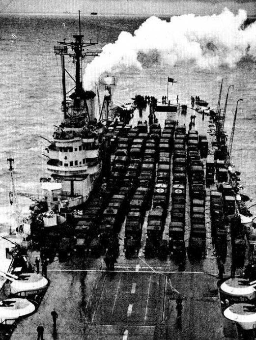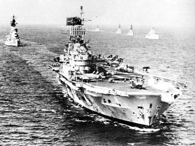 foto: El “Ark Royal” seguido por unidades británicas y norteamericanas, en el curso de unas maniobras navales celebradas en el Mediterráneo.
