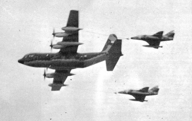 foto: Operación de aprovisionamiento en vuelo por un “KC-130” a dos A-4 “Skyhawk”.