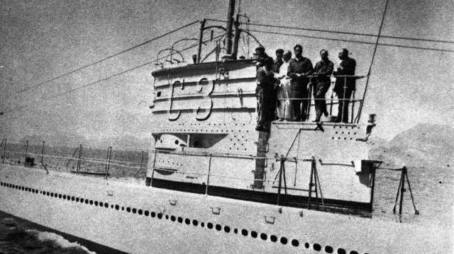 Fotografia fechadan en 1936 del submarino c-3, frente a la costa de Málaga
